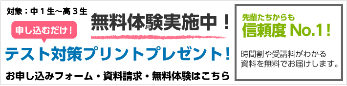 現在『ゼミナールコース数学』は満席となっておりますが、ゼミナールコース英語・個人指導英語・個人指導数学には余席がございます。無料体験授業をご希望の場合には、お早めにご連絡ください。 ※英語 数学各1回づつ無料で体験できま […]